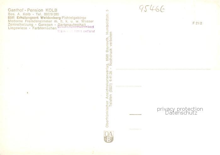 73867362 Weidenberg Gasthof Pension Kolb Gaststaette Hallenbad Ortsansicht mit Kirche postalisch nicht gelaufen Erhaltung siehe scans [FriedD77] KatCode: 11110009472199