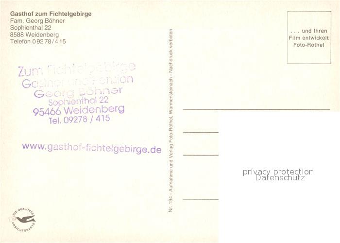 73087829 Weidenberg Gasthof zum Fichtelgebirge postalisch nicht gelaufen Erhaltung siehe scans [KathaD81] KatCode: 11110009472199