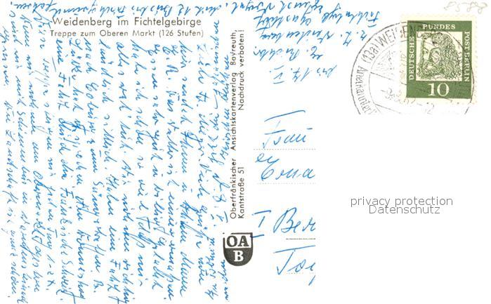 43347760 alte Postkarte Weidenberg Treppen zum Oberen Markt postalisch gelaufen Erhaltung siehe scans [WerneD78] KatCode: 11110009472199