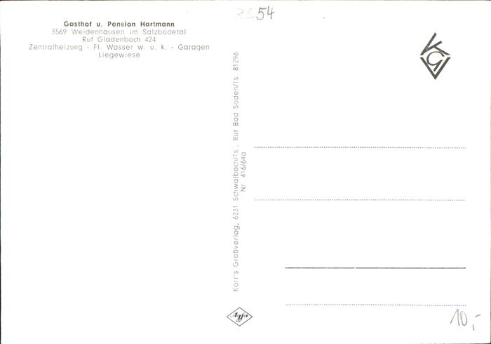 41274913 Weidenhausen Gladenbach Schwimmbad Pension Hartmann Waldmuehle postalisch nicht gelaufen gute Erhaltung KatCode: 11110006534010
