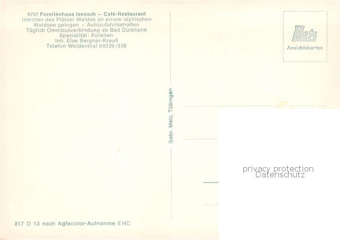 73791418 Weidenthal Pfalz Forellenhaus Isenach Cafe Restaurant Gondelteich postalisch nicht gelaufen Erhaltung siehe scans [WerneD78] KatCode: 11110007332048