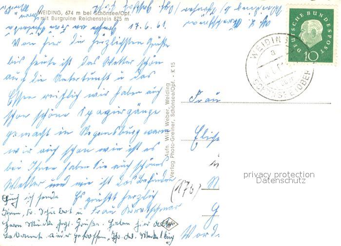 73664570 alte Postkarte Weiding Cham Oberpfalz Ortsansicht Ehrenmal Hochfelsen postalisch gelaufen Erhaltung siehe scans [WerneD78] KatCode: 11110009372174