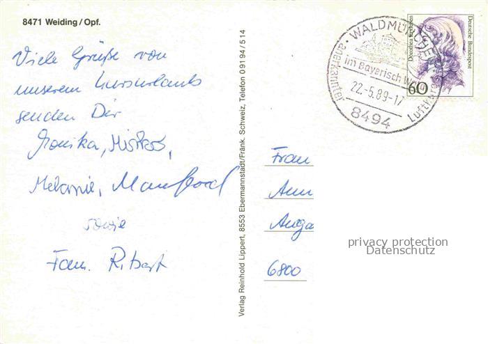 74050476 alte Postkarte Weiding Cham Oberpfalz Panorama Strassenpartie Kirche Panorama postalisch gelaufen Erhaltung siehe scans [WerneD78] KatCode: 11110009372174