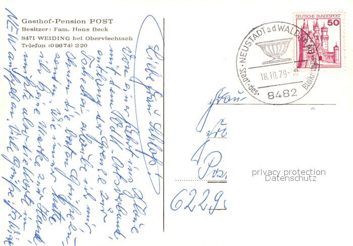 73541268 alte Postkarte Weiding Oberviechtach Gasthof Pension Post postalisch gelaufen Erhaltung siehe scans [KathaD81] KatCode: 11110009376176