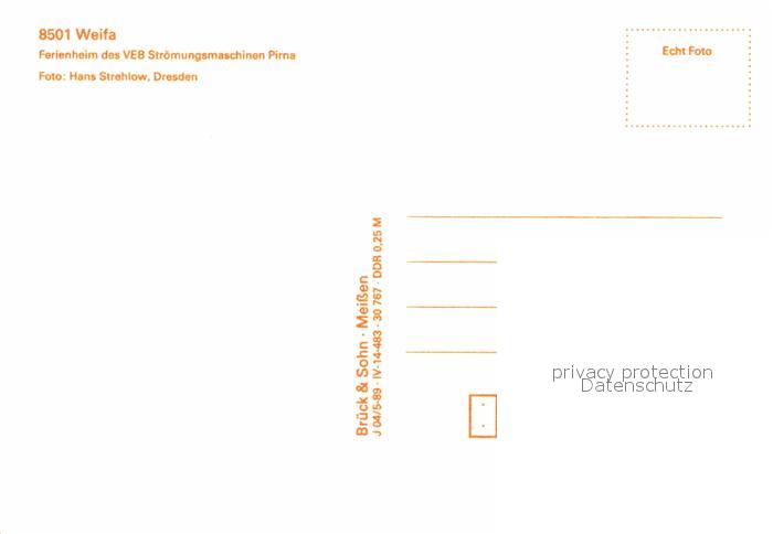72788877 Weifa Ferienheim des VEB Stroemungsmaschinen Pirna postalisch nicht gelaufen Erhaltung siehe scans [AndreD76] KatCode: 11110014272350