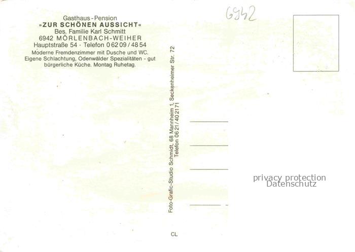 74048104 Weiher Moerlenbach Gasthaus Pension Zur schoenen Aussicht Gastraum Fremdenzimmer Ortsansicht postalisch nicht gelaufen Erhaltung siehe scans [FriedD77] KatCode: 11110006431017