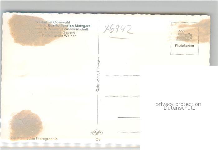 42930176 Weiher Odenwald Gasthof Pension Gramlich postalisch nicht gelaufen Erhaltung siehe scans [AndreD76] KatCode: 11110006431017