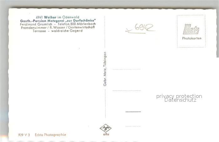 42932823 Weiher Odenwald Gasthof Pension zur Dorfschaenke postalisch nicht gelaufen Erhaltung siehe scans [AndreD76] KatCode: 11110006431017