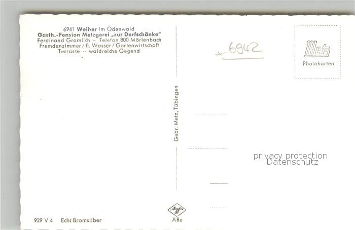 42932788 Weiher Odenwald Pension Gramlich postalisch nicht gelaufen Erhaltung siehe scans [AndreD76] KatCode: 11110006431017