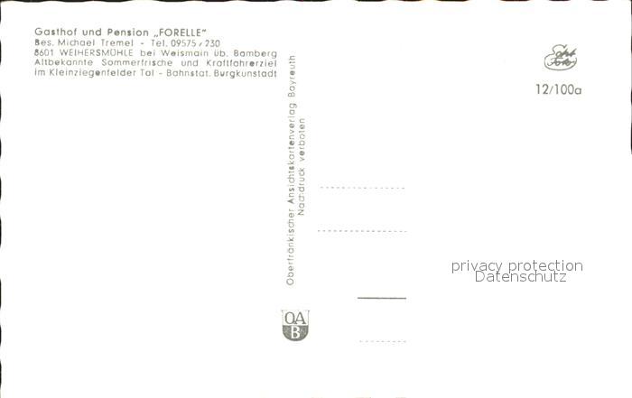 72202531 Weihersmuehle Bamberg Gasthaus Pension Forelle postalisch nicht gelaufen Erhaltung siehe scans KatCode: 11110009461000