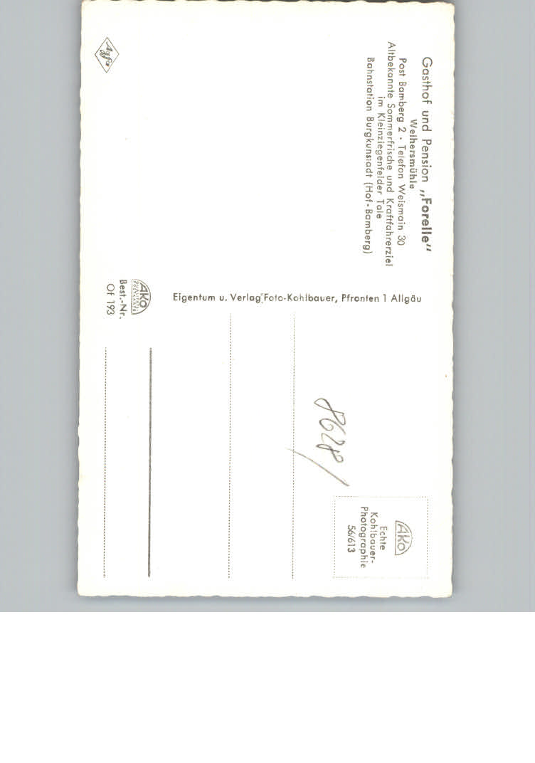 31168633 Weihersmuehle Bamberg Gasthof Pension Forelle postalisch nicht gelaufen KatCode: 11110009461000