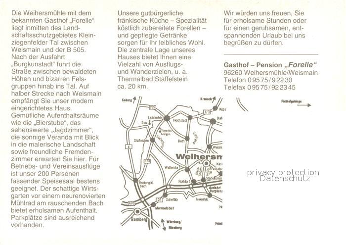 73659723 Weihersmuehle Weismain Gasthof Pension Forelle postalisch nicht gelaufen Werbekarte (keine Postkarte) Erhaltung siehe scans [FriedD77] KatCode: 11110009478176