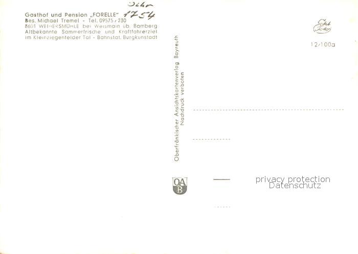 73645974 Weihersmuehle Weismain Gasthof Pension Forelle Panorama Kleinziegenfelder Tal postalisch nicht gelaufen Erhaltung siehe scans [FriedD77] KatCode: 11110009478176