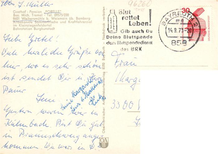 73884468 alte Postkarte Weihersmuehle Weismain Gasthof Pension Forelle Teilansichten postalisch gelaufen Erhaltung siehe scans [WerneD78] KatCode: 11110009478176