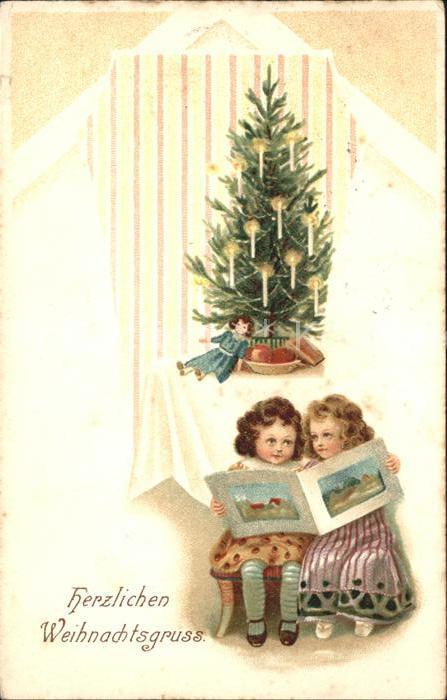 11854527 Weihnachten Kinder Buch Puppe Weihnachtsbaum Kerzen Litho KatCode 22100000001500