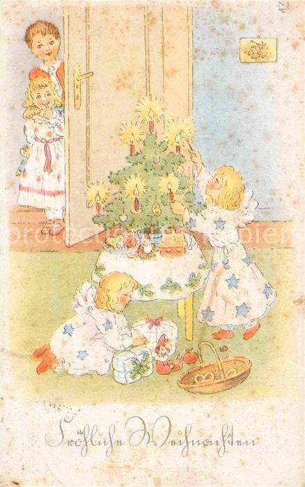 alte Postkarte Weihnachten Kinder Engel Weihnachtsbaum Geschenke postalisch gelaufen Erhaltung siehe scans [PaolaD17]