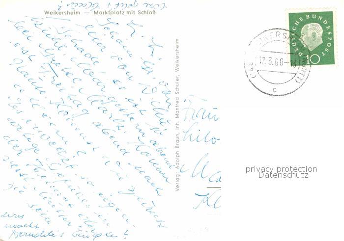 72695968 alte Postkarte Weikersheim Marktplatz mit Schlo postalisch gelaufen Erhaltung siehe scans [LiesaD40] KatCode: 11110008128126