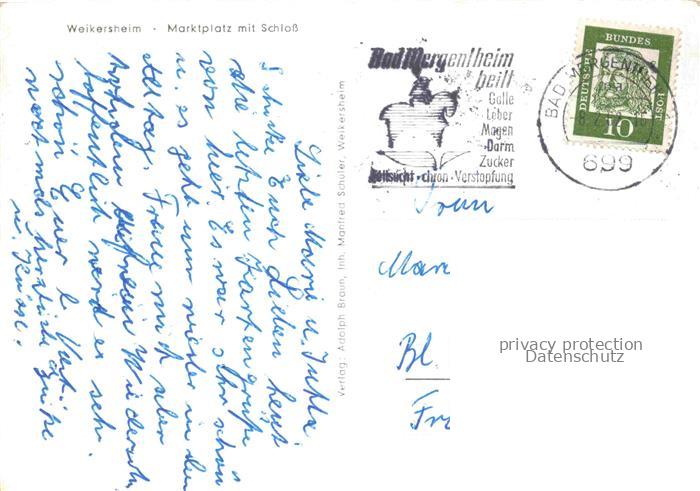 74024624 alte Postkarte Weikersheim Marktplatz mit Schloss postalisch gelaufen Erhaltung siehe scans [FriedD77] KatCode: 11110008128126