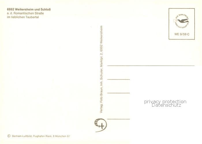 73088652 Weikersheim Schloss Fliegeraufnahme postalisch nicht gelaufen Erhaltung siehe scans [NatalD47] KatCode: 11110008128126