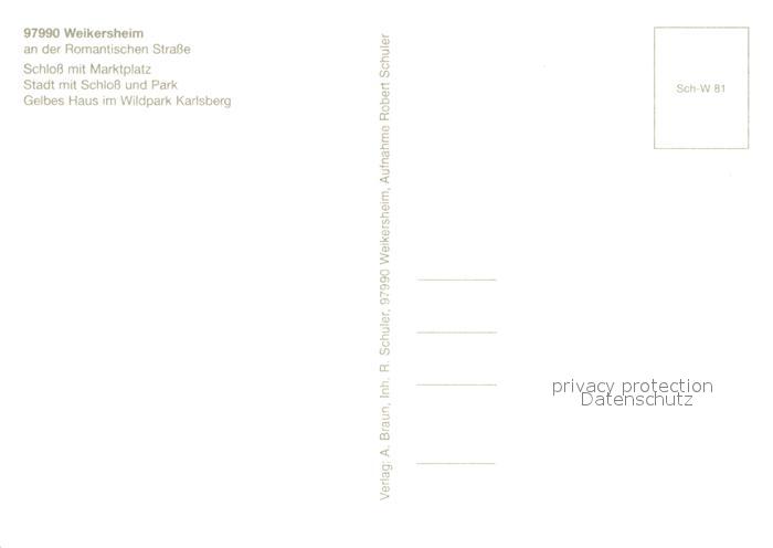 73271853 Weikersheim Schloss Marktplatz Fliegeraufnahme Park Gelbes Haus im Wildpark Karlsberg postalisch nicht gelaufen Erhaltung siehe scans [WerneD78] KatCode: 11110008128126