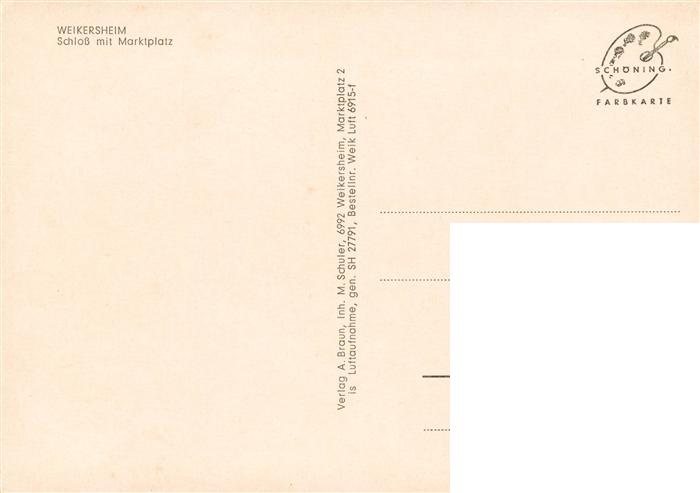 73944156 alte Postkarte Weikersheim Schloss mit Marktplatz Fliegeraufnahme postalisch gelaufen Erhaltung siehe scans [WerneD78] KatCode: 11110008128126