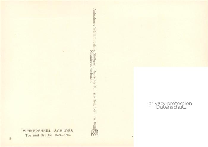 73624538 Weikersheim Schloss Tor und Bruecke postalisch nicht gelaufen Erhaltung siehe scans [FriedD77] KatCode: 11110008128126