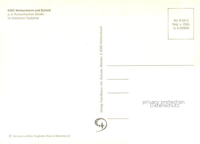 73620591 Weikersheim Stadt im Taubertal Schloss Fliegeraufnahme postalisch nicht gelaufen Erhaltung siehe scans [FriedD77] KatCode: 11110008128126