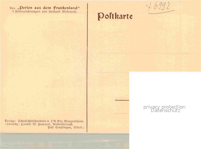 42874989 Weikersheim Stammschloss Hohenloher Fuersten Haupttor Wachgang Federzeichnung Wedepohl postalisch nicht gelaufen Erhaltung siehe scans [KathaD81] KatCode: 11110008128126