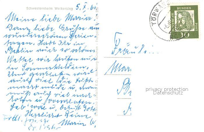73644202 alte Postkarte Weikersing Schwesternheim Fliegeraufnahme postalisch gelaufen Erhaltung siehe scans [FriedD77] KatCode: 11110009163000