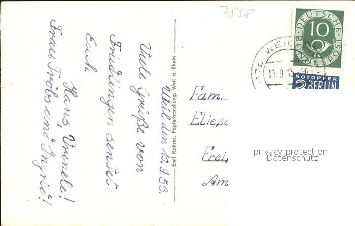 31721213 alte Postkarte Weil am Rhein A.H. Strasse postalisch gelaufen KatCode: 11110008336091