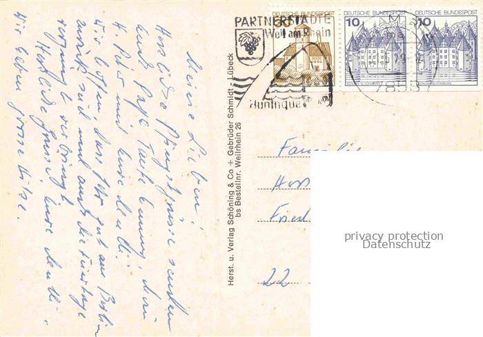 74153750 alte Postkarte Weil am Rhein Baden BW Luftaufnahme Hochhaus postalisch gelaufen Erhaltung siehe scans [FriedD77] KatCode: 11110008336091