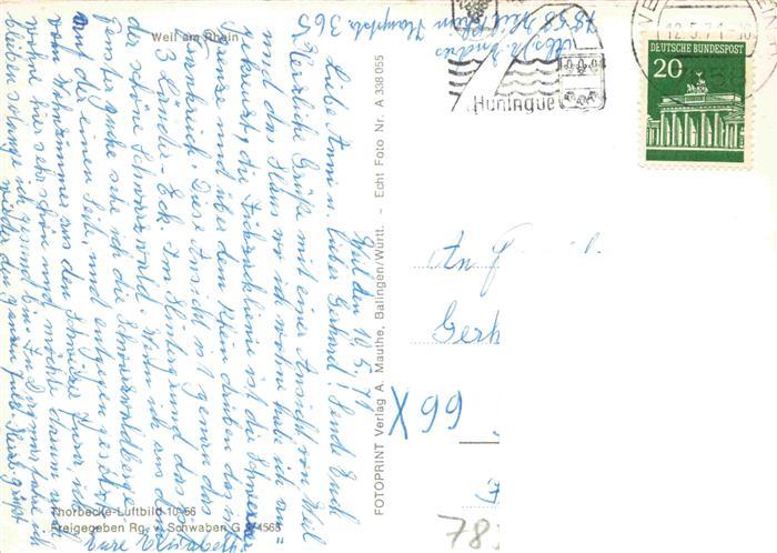 73973405 alte Postkarte Weil am Rhein Fliegeraufnahme postalisch gelaufen Erhaltung siehe scans [WerneD78] KatCode: 11110008336091