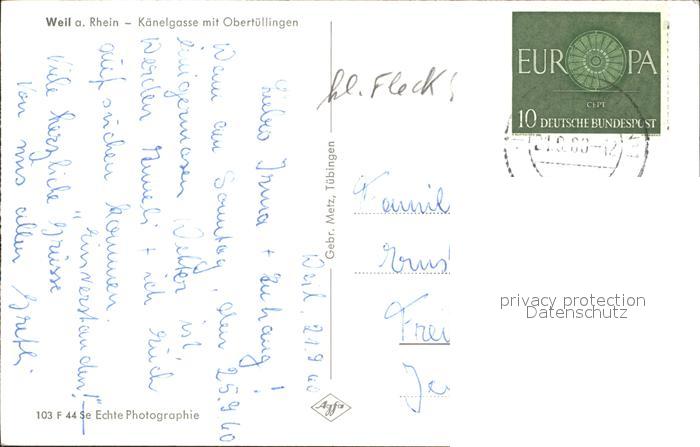 32338992 alte Postkarte Weil am Rhein Kaenelgasse mit Obertuellingen postalisch gelaufen Erhaltung siehe scans KatCode: 11110008336091