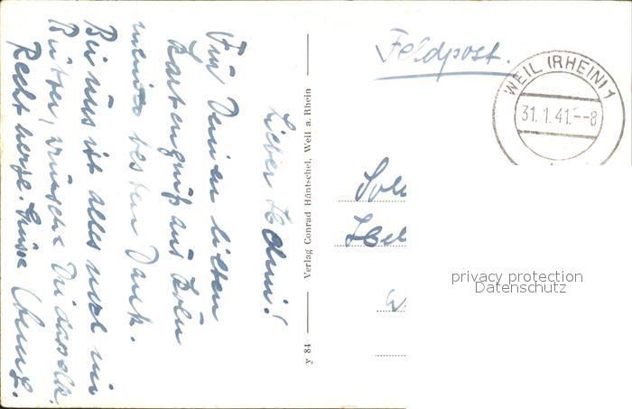 31841166 alte Postkarte Weil am Rhein Kriegerdenkmal Idyllischer Winkel postalisch gelaufen Feldpost Erhaltung siehe scans KatCode: 11110008336091