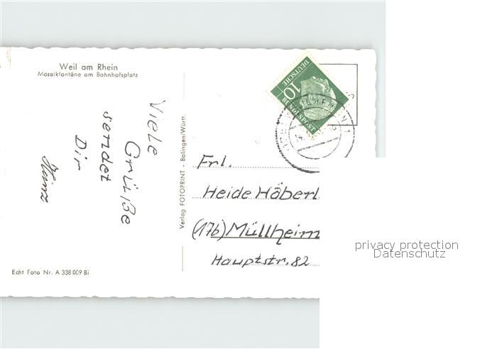 32361655 alte Postkarte Weil am Rhein Mosaikfontaene am Bahnhofsplatz postalisch gelaufen Erhaltung siehe scans KatCode: 11110008336091