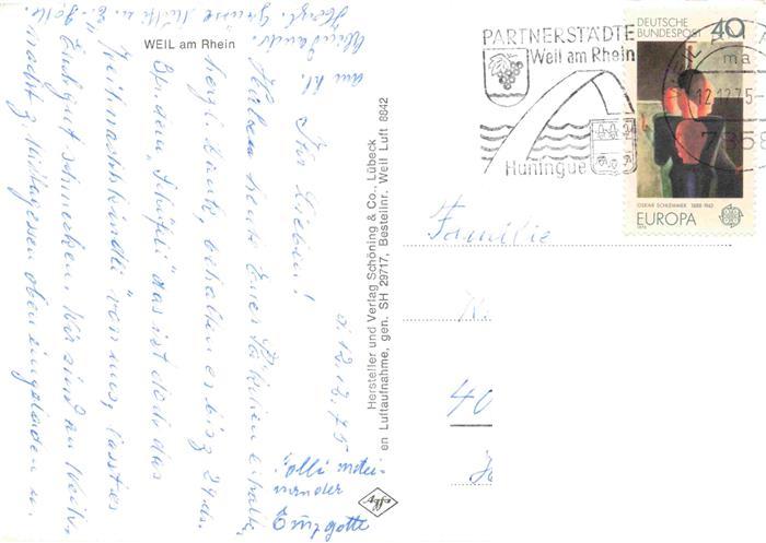 73973746 alte Postkarte Weil am Rhein Panorama postalisch gelaufen Fliegeraufnahme Erhaltung siehe scans [FriedD77] KatCode: 11110008336091