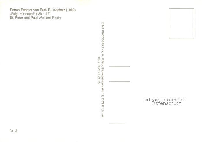 73622443 Weil am Rhein Petrus Fenster Folgt mir nach in der St Peter und Paul Kirche postalisch nicht gelaufen Erhaltung siehe scans [WerneD78] KatCode: 11110008336091