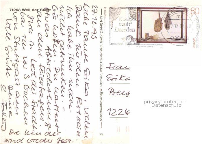 72646055 alte Postkarte Weil der Stadt Brunnen Marktplatz Kirche postalisch gelaufen Erhaltung siehe scans [FriedD77] KatCode: 11110008115050