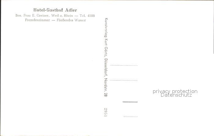 32205950 Weil Rhein Gasthaus zum Adler postalisch nicht gelaufen Erhaltung siehe scans KatCode: 11110008336091