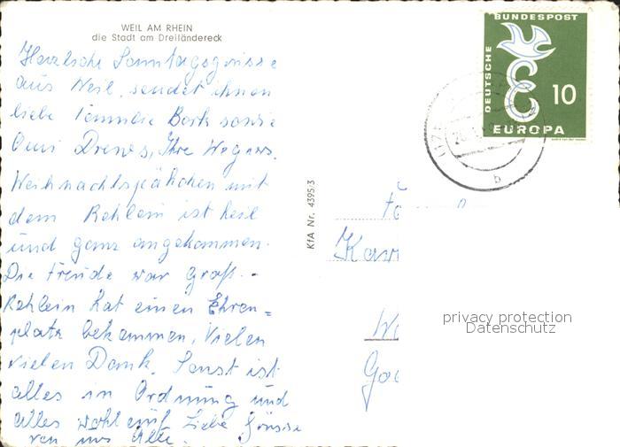 32212731 alte Postkarte Weil Rhein Hauptstrasse postalisch gelaufen Erhaltung siehe scans KatCode: 11110008336091