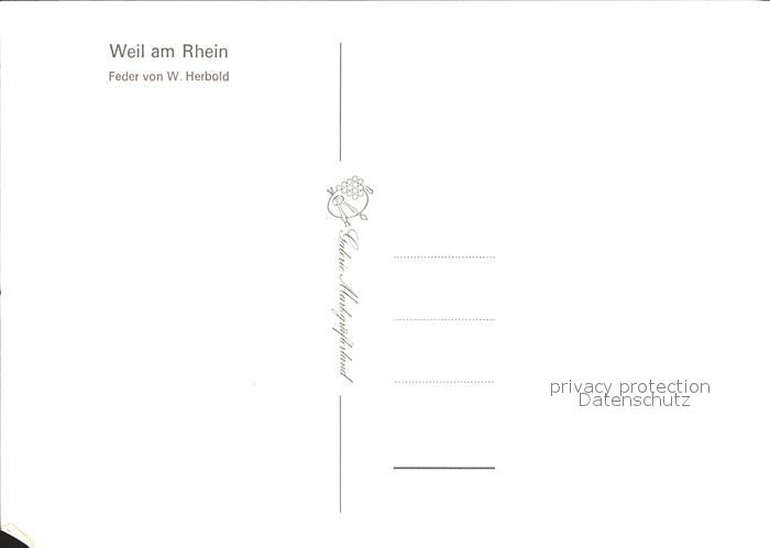 Weil Rhein Ortsansicht mit Kirche Federzeichnung von W Herbold Kuenstlerkarte