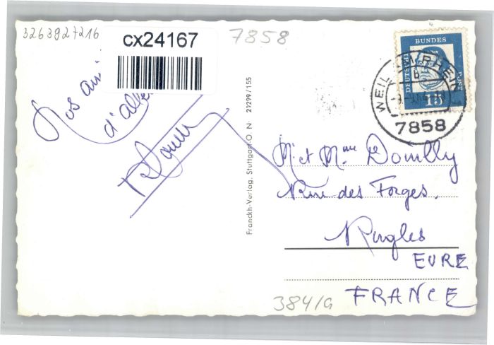 30767609 alte Postkarte Weil Rhein Tuellinger Berg Stuedlestrasse Schwimmstadion x postalisch gelaufen KatCode: 11110008336091