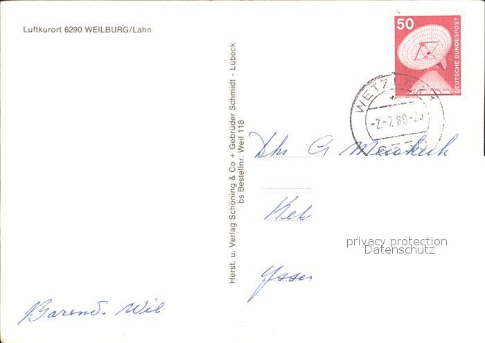 72255282 alte Postkarte Weilburg postalisch gelaufen Erhaltung siehe scans KatCode: 11110006533017