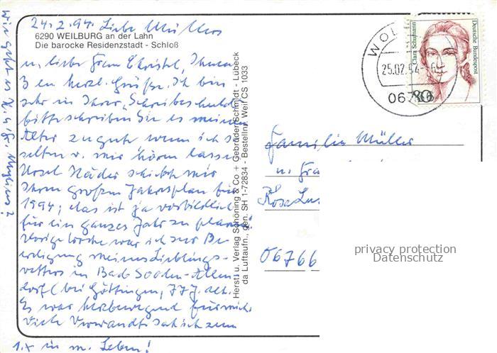 74099890 Weilburg Barockes Residenz Schloss postalisch gelaufen Erhaltung siehe scans [WerneD78] alte Postkarte Wern Katcode 11110006533017