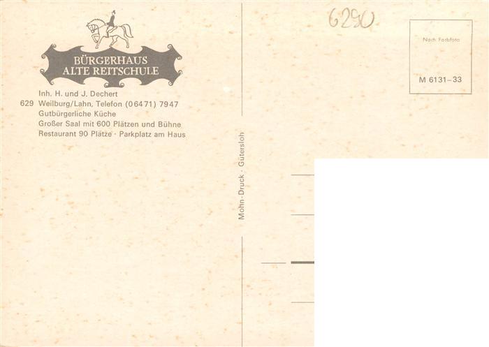 73936064 Weilburg Buergerhaus Alte Reitschule Gastraum Theatersaal postalisch nicht gelaufen Erhaltung siehe scans [WerneD78] KatCode: 11110006533017