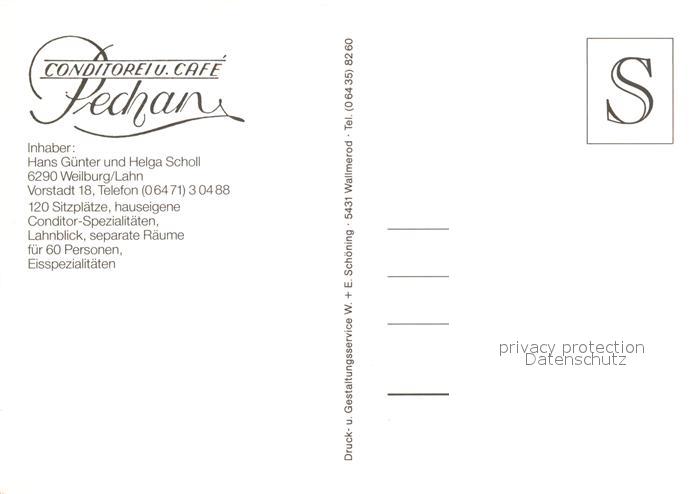 73570050 Weilburg Conditorei Cafe Pechan postalisch nicht gelaufen Erhaltung siehe scans [FriedD77] KatCode: 11110006533017