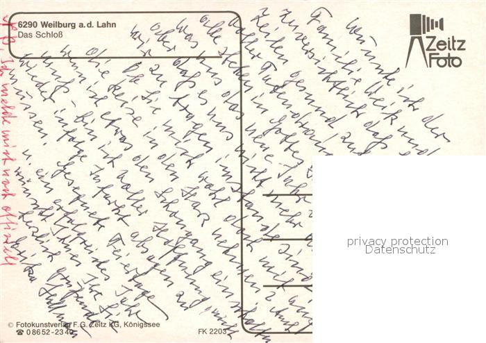 73001033 Weilburg Das Schloss postalisch nicht gelaufen Erhaltung siehe scans [AndreD76] KatCode: 11110006533017