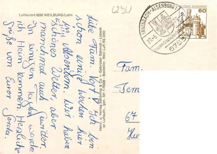 73936061 alte Postkarte Weilburg Fliegeraufnahme postalisch gelaufen Erhaltung siehe scans [WerneD78] KatCode: 11110006533017