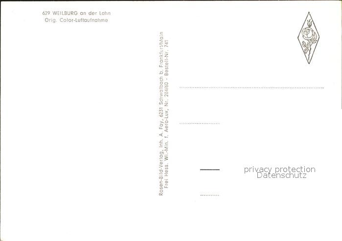 72425706 Weilburg Fliegeraufnahme postalisch nicht gelaufen Erhaltung siehe scans KatCode: 11110006533017
