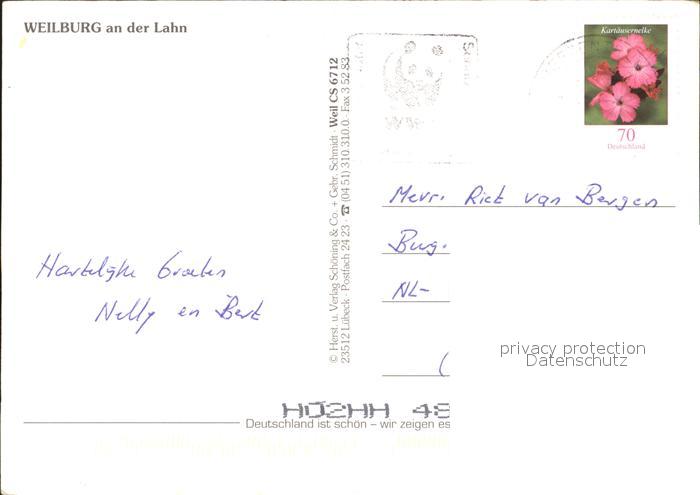 72225036 alte Postkarte Weilburg Fliegeraufnahme postalisch gelaufen Erhaltung siehe scans KatCode: 11110006533017